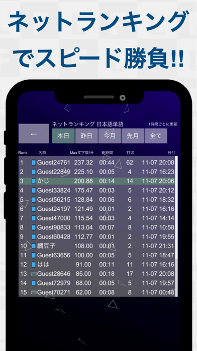 友達と競ってみました。自分の方が速いと思ってましたが、なかなか速くて、負けてしまいました。後、トップ100まで記録できるので、上達具合がわかっていい感じです。❤️