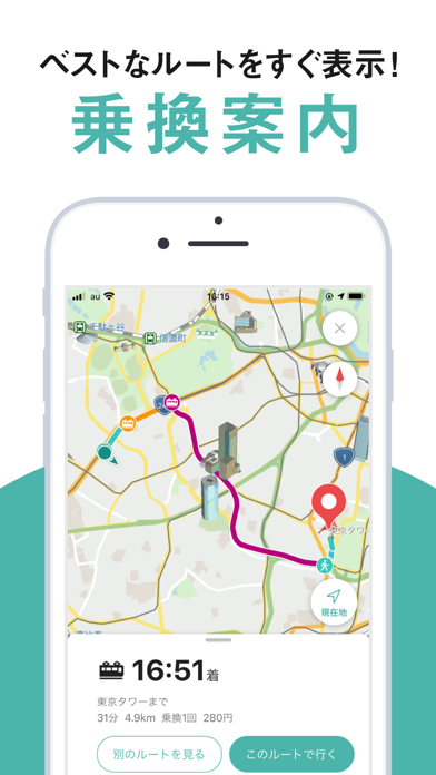 - 移動手段ごとのベストルートを表示。複数回調べる手間を省ける