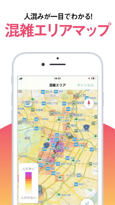 - 人混みが視覚的に分かるマップにより、回避ルートを事前に探せる