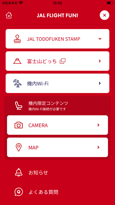 - アプリ内から機内Wi-Fiにアクセス。スタンプ以外にもお役立ち