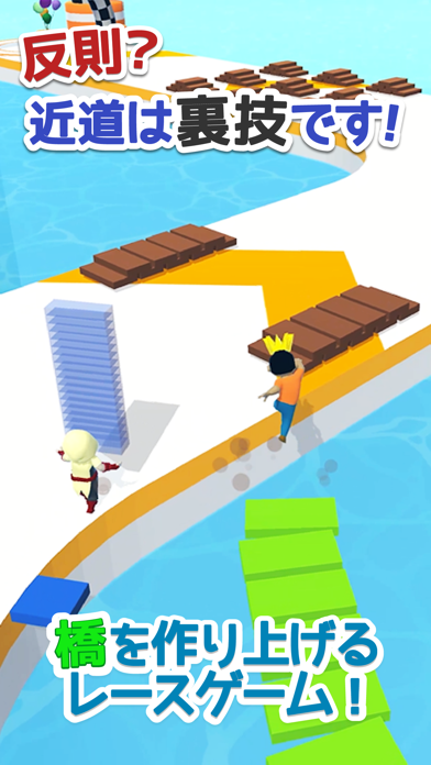 - 床板を拾って&敷いて、近道をしながらゴールを目指すレースゲーム