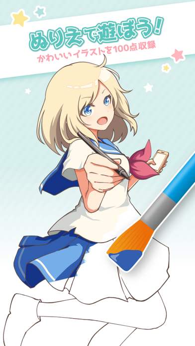 美少女キャラのぬりえです。自分好みの配色でかわいいキャラクターが完成した時は嬉しい。色を塗っただけだけど、全て自分が手掛けたキャラクターのように思えて愛着が湧いちゃう。