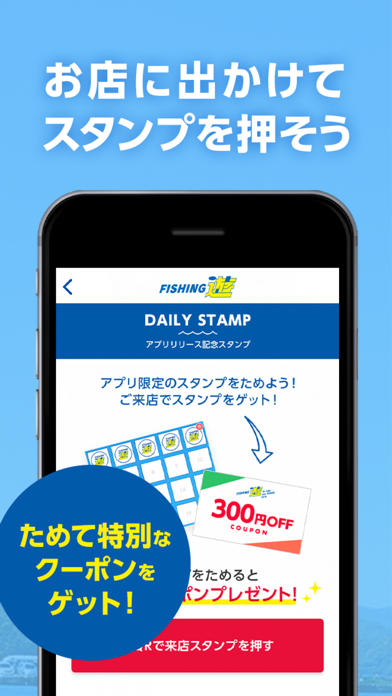 「フィッシング遊」の最新情報・お得な情報をスマホで確認できるアプリ。スタンプやクーポンを利用でき、通常よりもお得に買い物できるようになります。