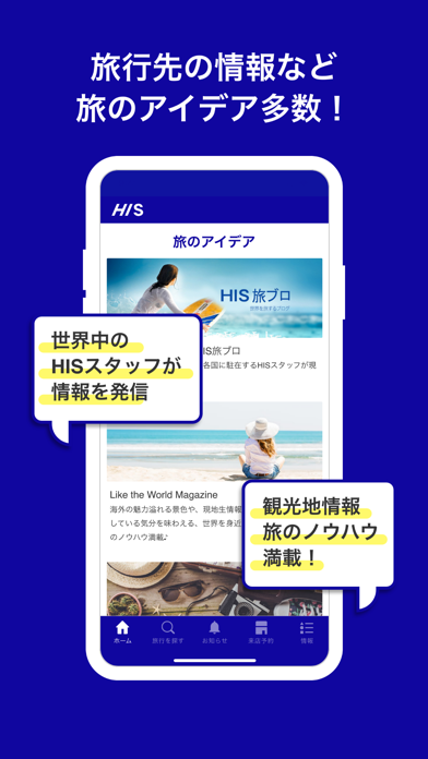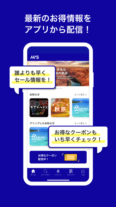 - HISのツアー情報やお得な情報をスマホから確認できるアプリ