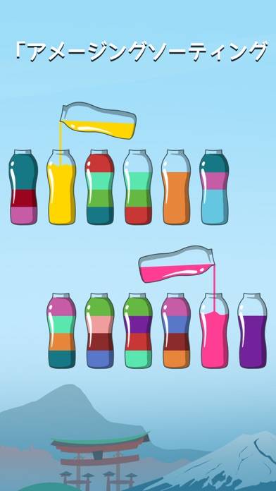 カラフルな水を使ったパズルゲームアプリ。異なる色の水が入った試験管を、1色にそろえることが目的です。