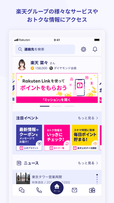 - ニュースやポイント獲得など、連絡のほかにも多彩な機能を使える