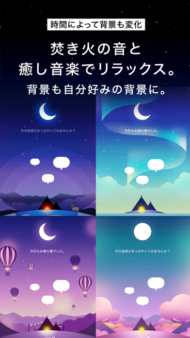 心地よい焚き火の音とリラックス音楽が流れる空間で、誰にも知られず思いをつぶやけます。特筆すべきは、コメント機能がなく「いいね」だけで共感を伝えるシステム。そのため自己表現が気兼ねなくでき、日々の出来事を落ち着いて綴れます。SNS疲れを感じている方に、心地よい一時を。