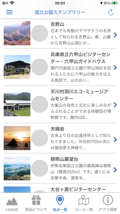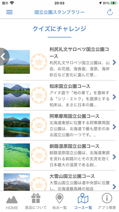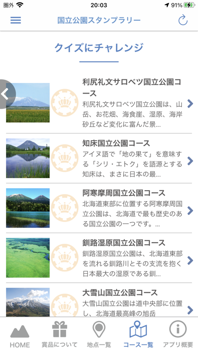 全国の美しい国立公園を巡りながら楽しめる、デジタルスタンプラリーアプリ。GPSを通じて国立公園の見どころスポットにチェックインすると、スタンプが集められます。
