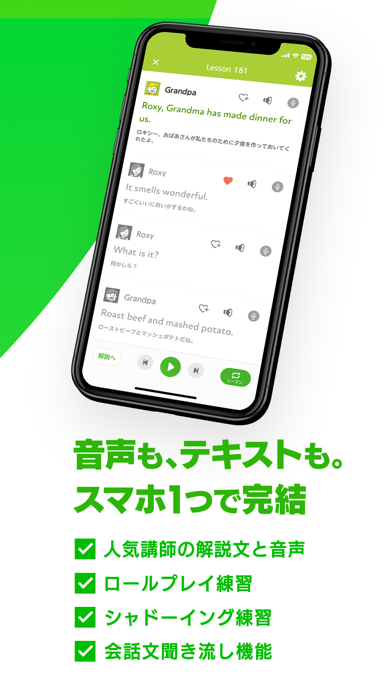 そのアプリでラジオ英語を聞いてから、こちらのアプリを使って復習しています。