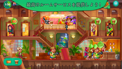 チェックインにコーヒーなど、次々と出されるお客さんの要求を次々に叶えてホテルを経営していくアクションパズル。それぞれの注文には制限時間があり、間に合わないとゲームオーバーになってしまいます。どれをどの順番で片付けていくか、瞬時の判断と思考が楽しめますよ。