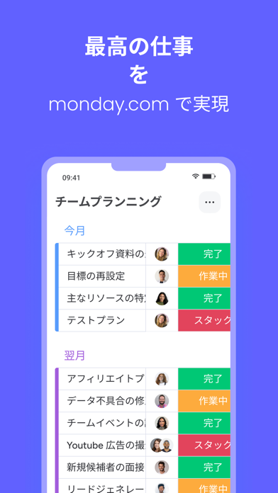 ▲プロジェクトなどの各段階の担当者や状況を一覧。日付や評価など、情報のカラムは様々に追加できる。