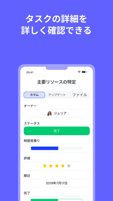 自分のタスクを見れば、割り当てられた仕事がひと目でわかります。業務を始めるときや、やり残しがないか確認するときにおすすめ。達成したタスクも見られるので、達成感も得られるでしょう。