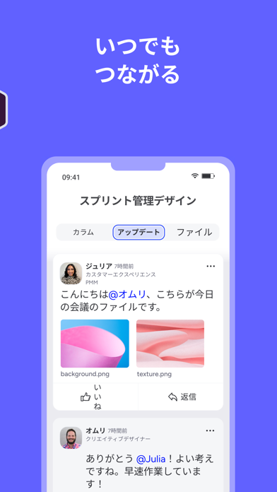 - PC版とも連携や共有が可能。状況を選ばずチームとやり取りができる