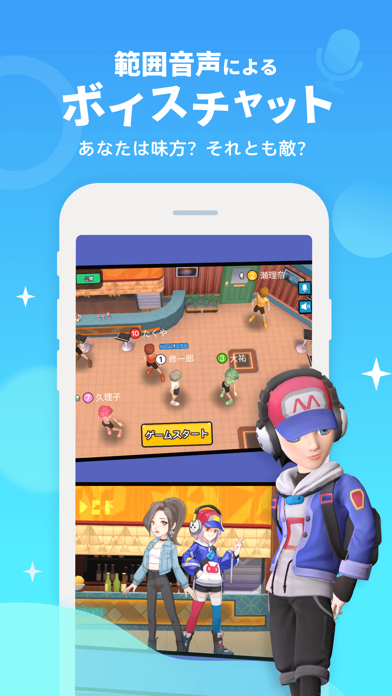 - 市民側は観察力・人狼側は演技力が試されるボイチャ機能付き人狼ゲーム