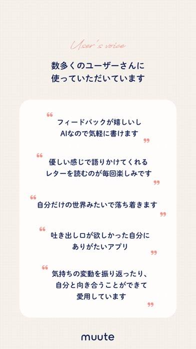 AIが友人からの手紙のような形式で分析レポートを送ってくれます。このレポートには、最近の感情や思考の変動、気づきが含まれています。定期的なフィードバックにより、自分の成長や変化を継続的に確認できるでしょう。