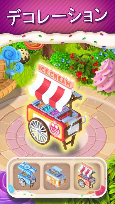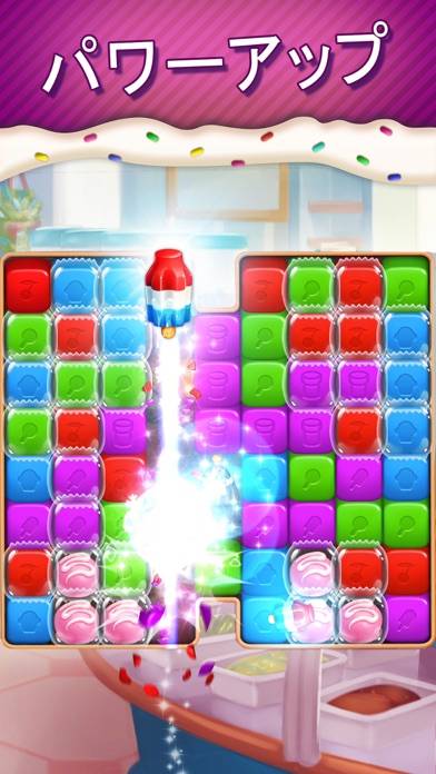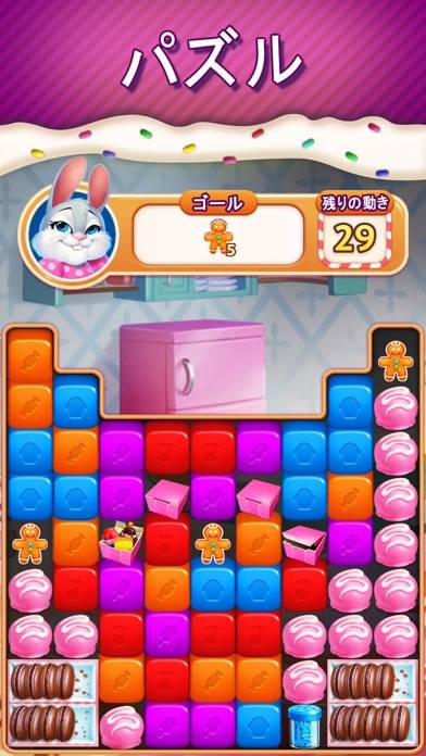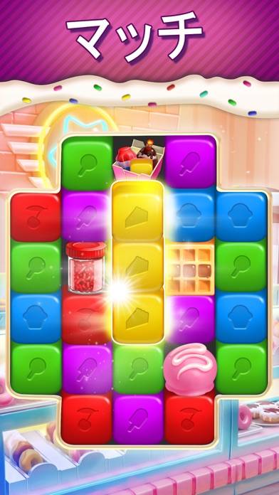 ウサギのジョイや、ぽっちゃりペンギンのスクープスなどたくさんの動物たちと一緒に、様々なお菓子屋さんをオープンさせていくマッチ3パズル。
