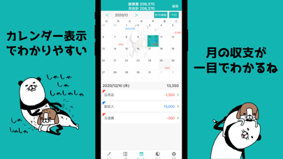 - グラフやカレンダーで、収支を可視化できる。