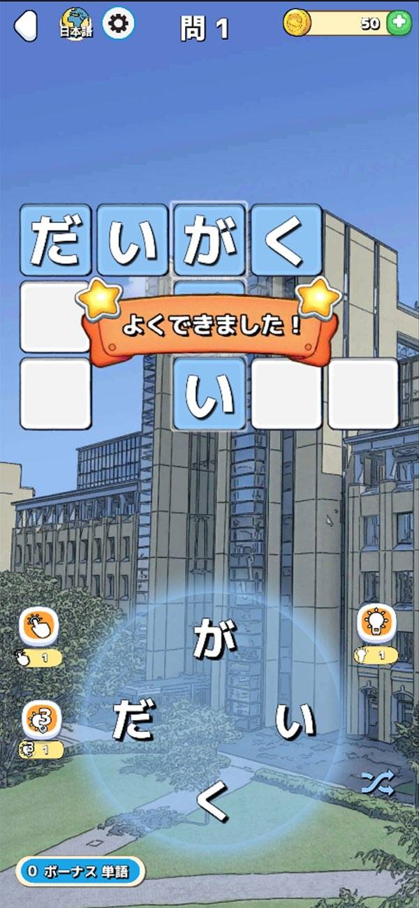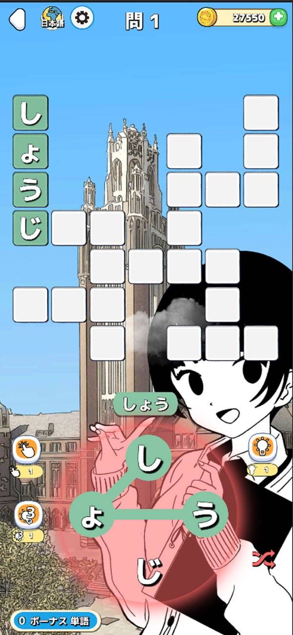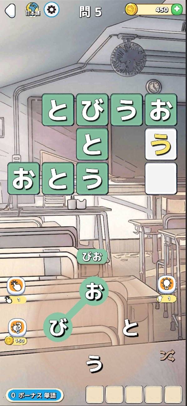 - 指で文字をなぞり、単語を作っていくクロスパズルゲーム