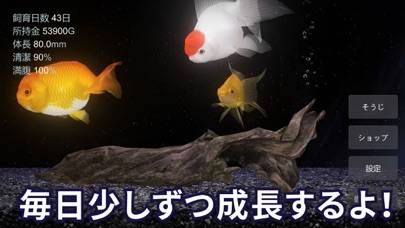 水槽の中で金魚を育てられる、のんびりとした育成ゲーム。金魚たちがほのぼのと泳ぐのを眺めて楽しめます。お世話は時々エサをあげたり、水を交換したりするだけとお手軽。