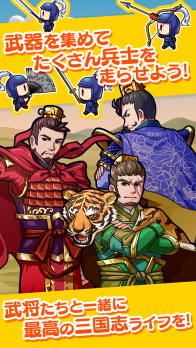 ▲同レベルの武器を合わせたら戦場の兵士に渡すだけ。放置で敵を倒して資金調達をしてくれる。