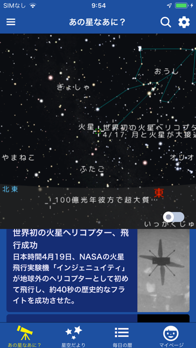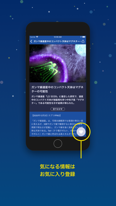 - 宇宙に関するニュースも配信。観測地点の方角も確認可能