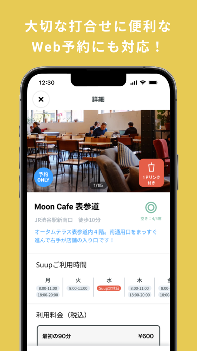 - 席が空いているかアプリでチェック。予約なしで利用が手軽