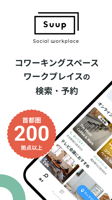 コワーキングスペース、アプリ専用ワークプレイスを検索するサービス。予約不要で、QRコードを読み取ってチェックインするだけで入室。場所によって異なる利用料金を確認して、時間単位で利用できます。
