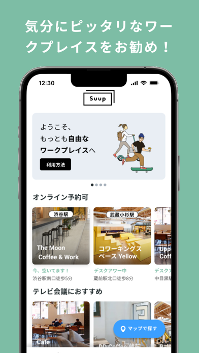 近くのワークプレイスを検索 スタイルに合わせた場所が見つかる