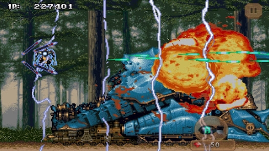 ▲4つの難易度が選べる横スクロールシューティング。全体攻撃はサクッと敵を殲滅できる爽快感がある。