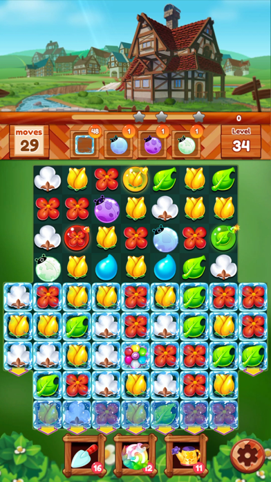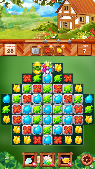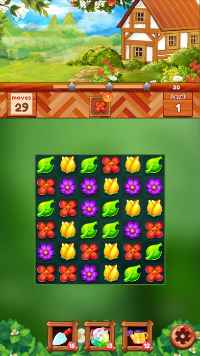 - 赤や紫などカラフルなお花を揃えて消していくマッチ3パズル