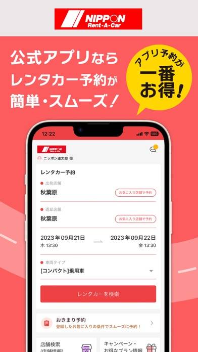 - ニッポンレンタカーの営業所を検索し、利用予約ができるアプリ