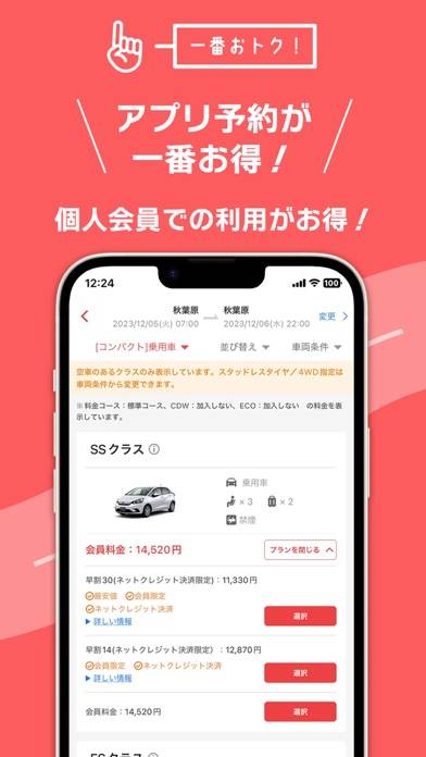 ▲プランは車種ごとに表示。何人乗りかや喫煙の可否といった情報も見やすく出してくれる。