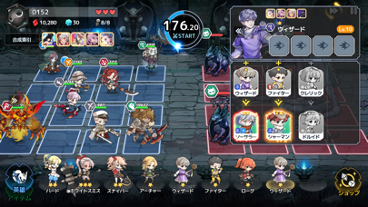 12マスのフィールドにキャラクターを召喚させて戦うスタイル。配置が終われば完全フルオート。最初は簡単ですが、中盤にさしかかるとキャラの配置で忙しくなるのでオートと言えどもやりがいはあると思います。