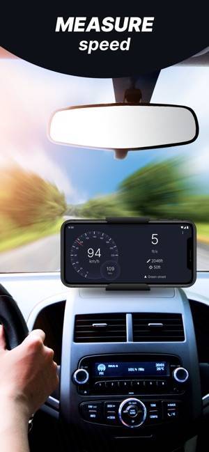 速度を画面中央に大きく表示し、最高速度・移動距離・GPS精度を下部に配置したシンプルなレイアウト。運転中や運動中でも一瞬の視線移動で必要な情報を把握でき、安全性を損なうことなく正確な速度確認が可能です。