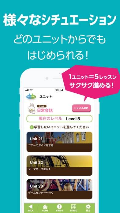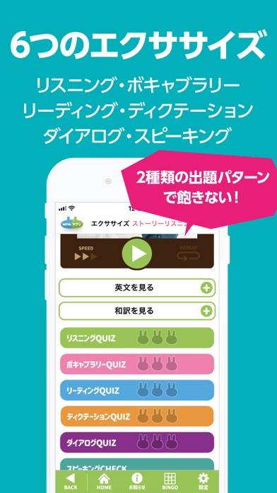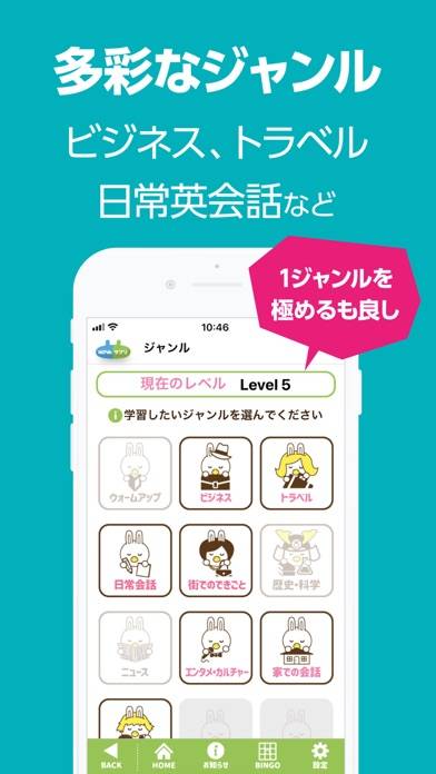 - はじめに自分の英会話レベルを測定し、適切な難易度から学習できる
