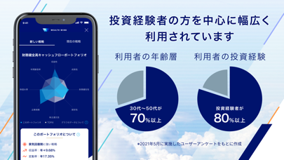 現在の日本経済をどう思っているか、という質問から、自分の考えに合わせて資産運用できるのは素晴らしいアプリ。考えに沿ったポートフォリオを作ってくれるのでプランを考えやすい。サポートを多めにしてほしい自分には合ってる。