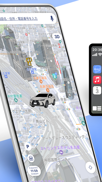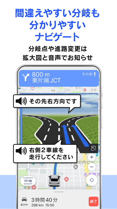 | わかりやすい表示の有無 | 信号の強調表示 わかりにくい箇所の拡大表示 車線+曲がる方向の強調表示 交通規制などマークで表示 近くのSAやPAの情報表示 渋滞箇所の表示 ○m先右折などが表示 |