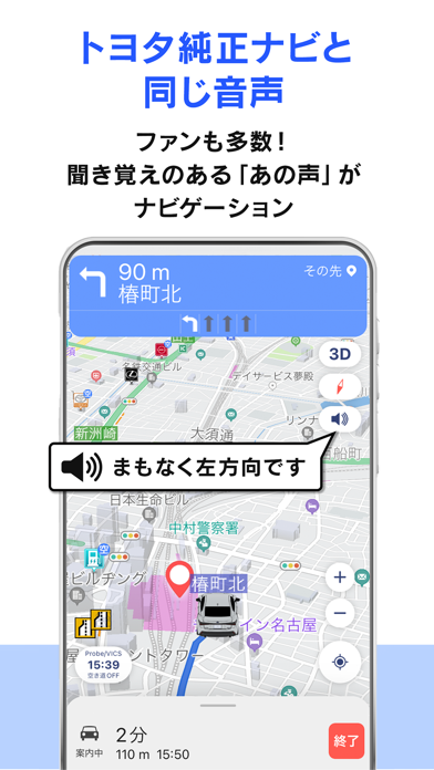 案内画面がシンプルで見やすいカーナビアプリ。条件を変更することで、距離や安さなど優先したい条件に沿ったルートを提案してくれます。音声ナビも完備しており、運転に集中できるのも安心。またオフラインに対応しているため、山道など電波が届かない場所でも道案内を続けてくれるのが嬉しいところです。