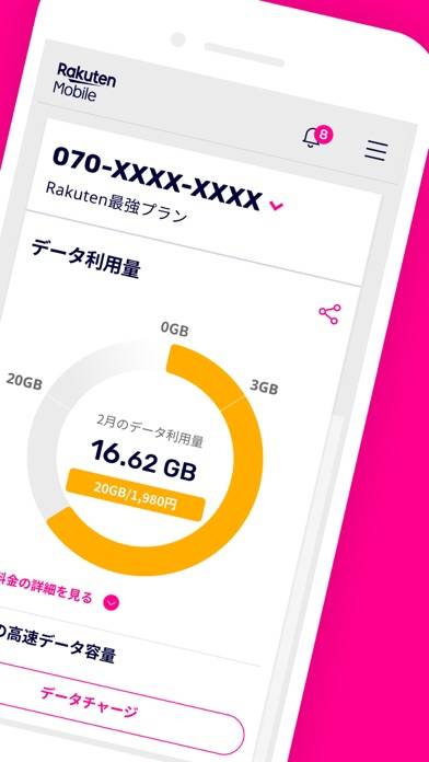 - 楽天モバイル会員専用。契約している回線の利用状況がわかるアプリ