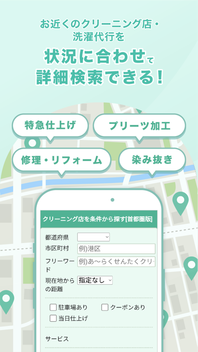 - お気に入り店舗のクーポンを保存。お得にクリーニングできちゃう