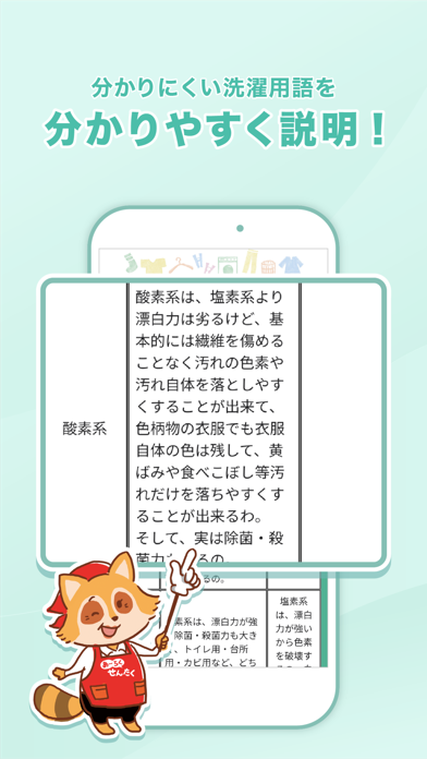「おせんたく用語集」は、洗剤や漂白剤によくあるワードを解説しています。酸素系や塩素系、タンブル乾燥など、知っておくと次の洗濯に役立つ知識が満載です。