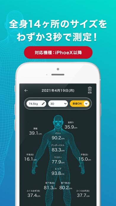 毎日忙しい中でも、体型の変化を手軽にチェックできるスマホ採寸アプリです。カメラの前に立つだけで、全身14ヶ所のサイズをたった3秒で測定。さらにビフォーアフターを重ねて比較できるから、小さな変化も見逃しません。頑張った分を数字と見た目で実感できるのがうれしいポイントです。