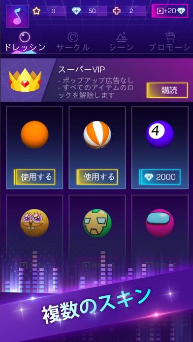 ▲ダイヤを使用したり広告を見たりすれば、ボールのデザインをアンロック可能。気分で変えるのもいいかも。