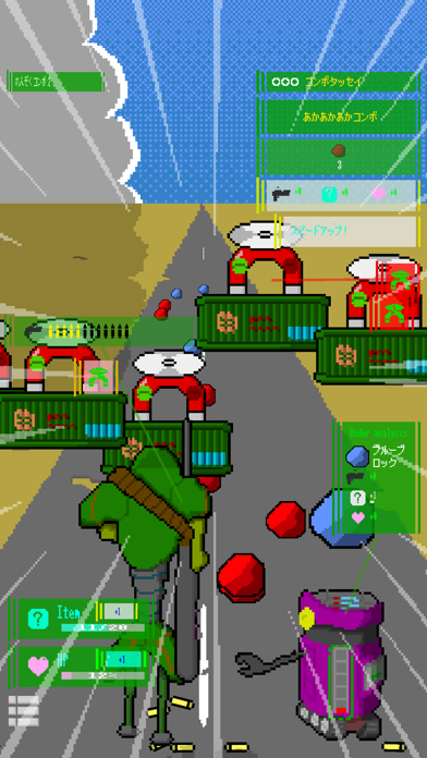 ▲機体も強化されていくので、赤や青など落ちているゴミをタップして拾っていこう。
