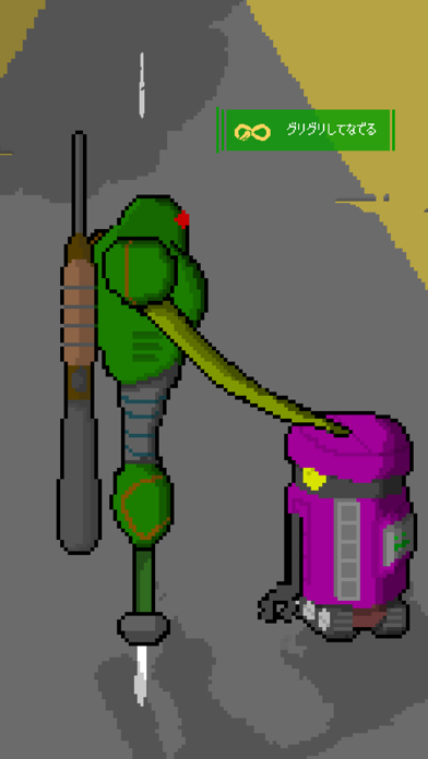 時折登場するレンジやドローンはタップして破壊。ゴミ(アイテム)をたくさん落とすので、しっかり壊していきましょう。本アプリはゴミを回収し、「処刑人」とバトルをしていくのが基本。ですが小さいロボットとの手が離れたら画面を連打して手を繋いであげるという動作が、ほっこりとした気分にさせてくれますよ。