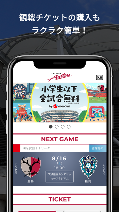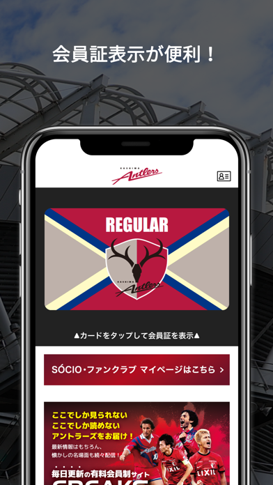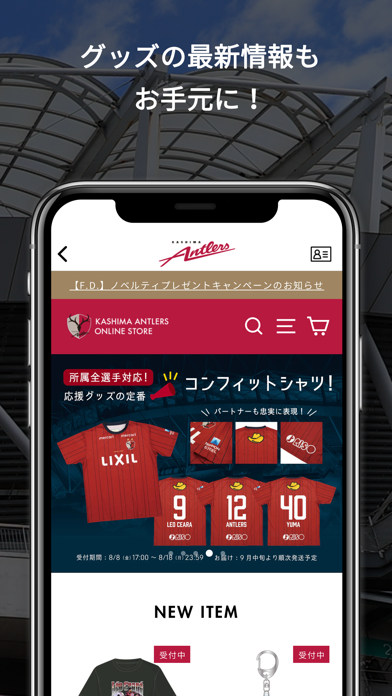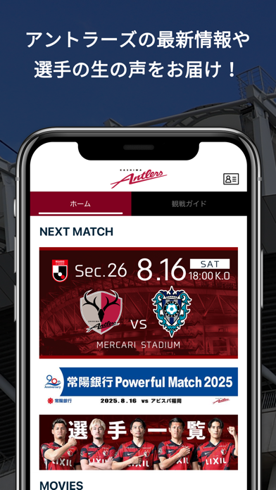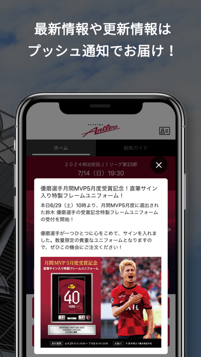 - 試合結果やグッズ情報などが確認できる鹿島アントラーズ公式アプリ