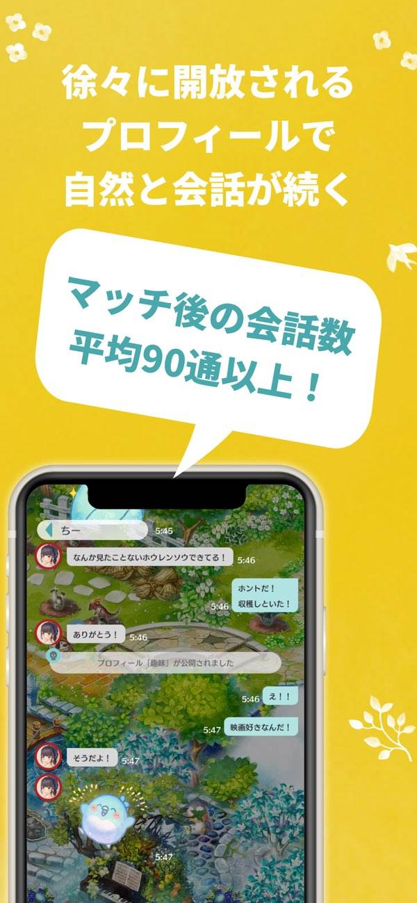 - ゲーム内の恋庭を育て、親睦を深める新感覚のマッチングアプリ