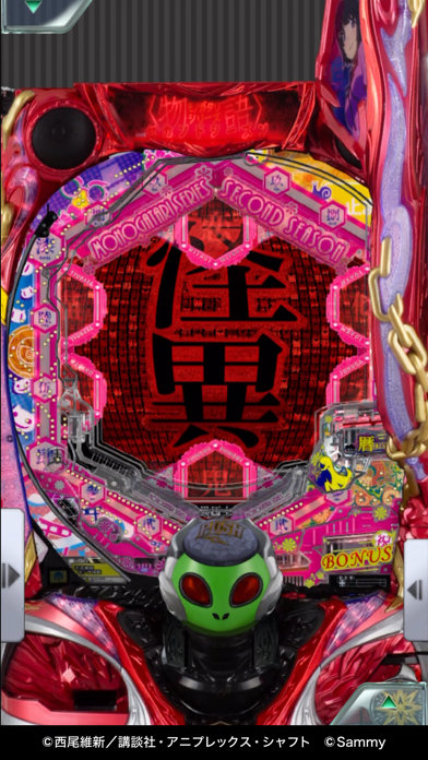 パチンコ「〈物語〉シリーズ セカンドシーズン」のアプリ版。『777Real』と連携して利用するアプリで、起動するには『777Real』内からの操作が必要です。遊技にはアプリ内のポイントを使いますが、逆に当たればポイントを増やせますよ。