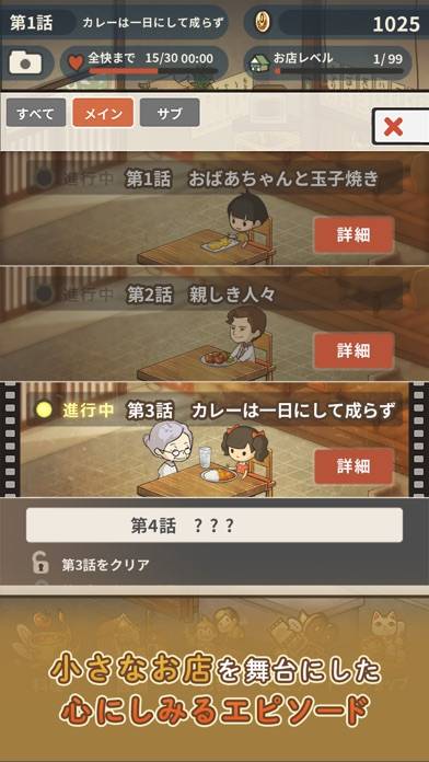お坊さん・主婦・お巡りさん・自分の孫など多様な客がいつしか常連客となり、おばあちゃんに悩み相談や近況報告をしてきます。その様子を12個のメインストーリーと7個のサブストーリで観ていく楽しみもありますよ。