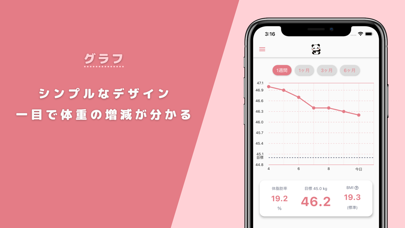 日々の体重や食事の記録が可能。グラフ機能を使って「1週間」や「1カ月」などの体重の推移をひと目でチェックできるのが特徴です。進捗を視覚的に確認できるため、目標に向かっての変化を実感しやすいでしょう。